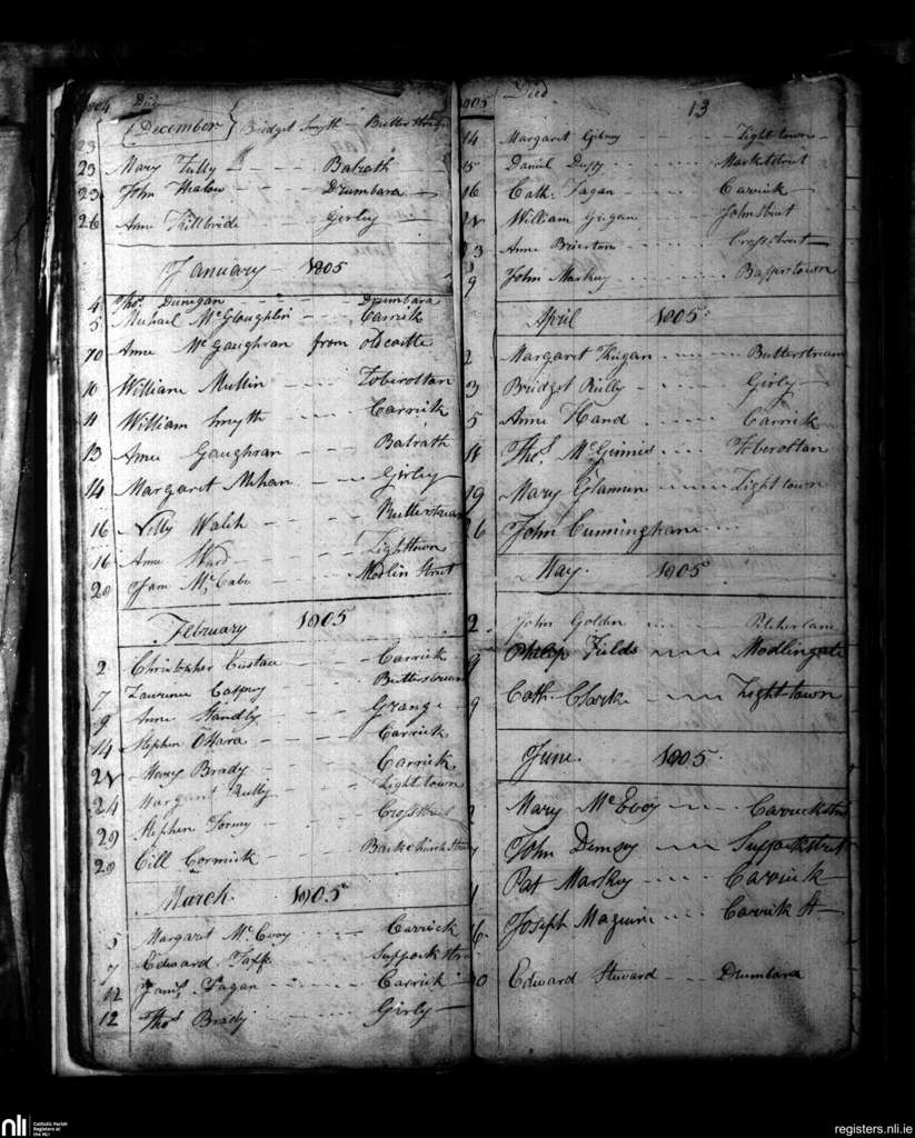 Kells; County of Meath; Diocese of Meath. Deaths, Dec. 1804 to June 1805