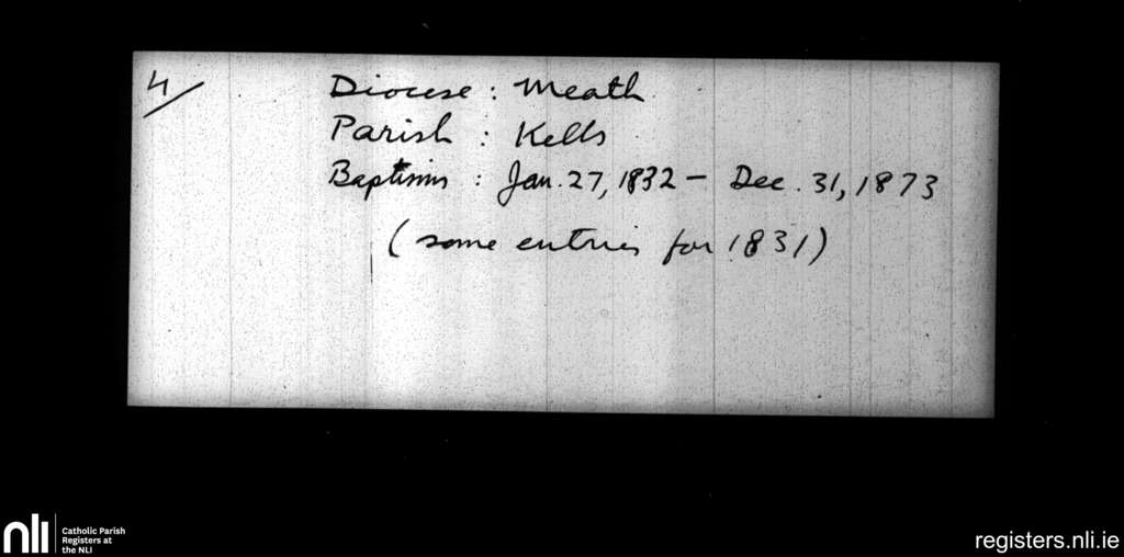 Kells; County of Meath; Diocese of Meath. Baptisms