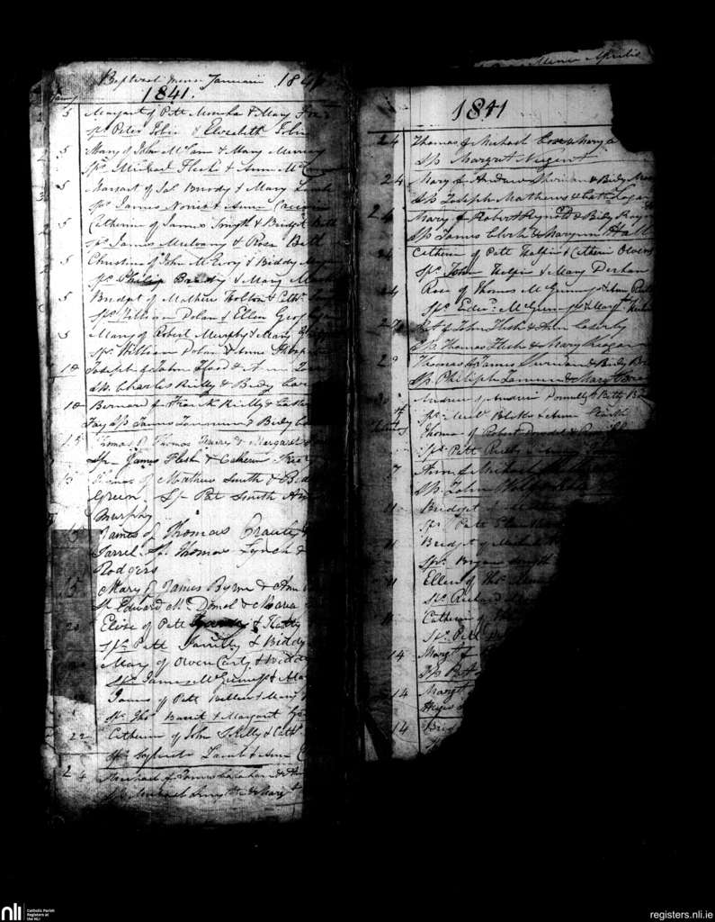 Kells; County of Meath; Diocese of Meath. Baptisms, Jan. 1841 to Feb. 1841