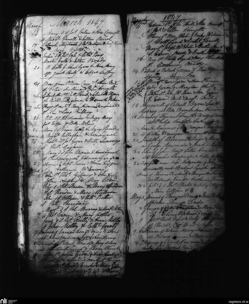 Kells; County of Meath; Diocese of Meath. Baptisms, Mar. 1847 to May 1847