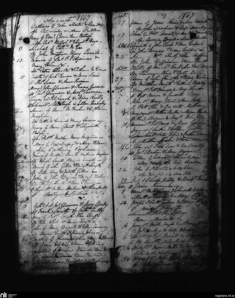 Kells; County of Meath; Diocese of Meath. Baptisms, Aug. 1847 to Nov. 1847