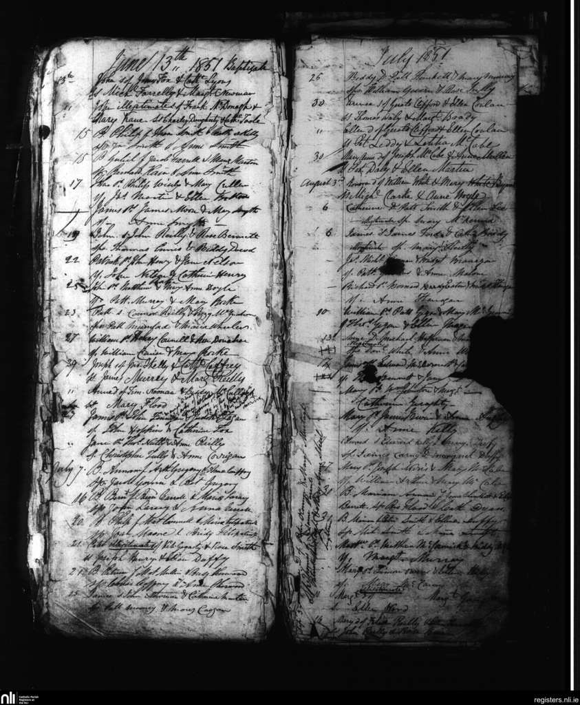 Kells; County of Meath; Diocese of Meath. Baptisms, June 1851 to Sep. 1851