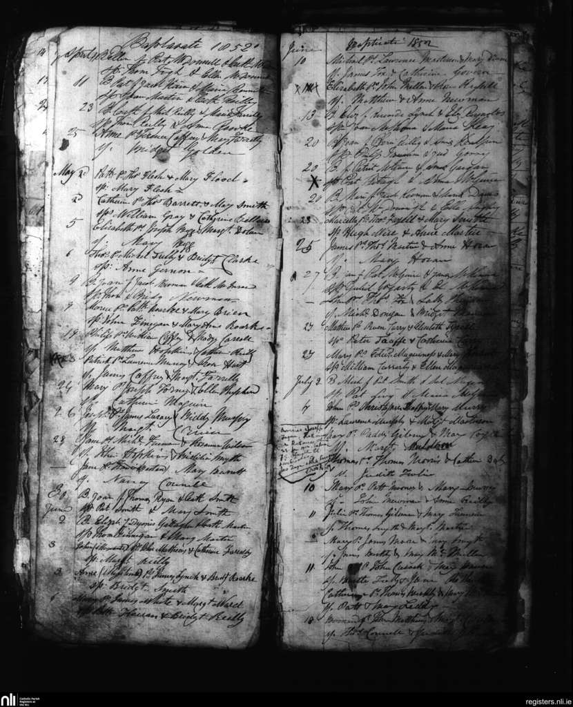 Kells; County of Meath; Diocese of Meath. Baptisms, Apr. 1852 to July 1852