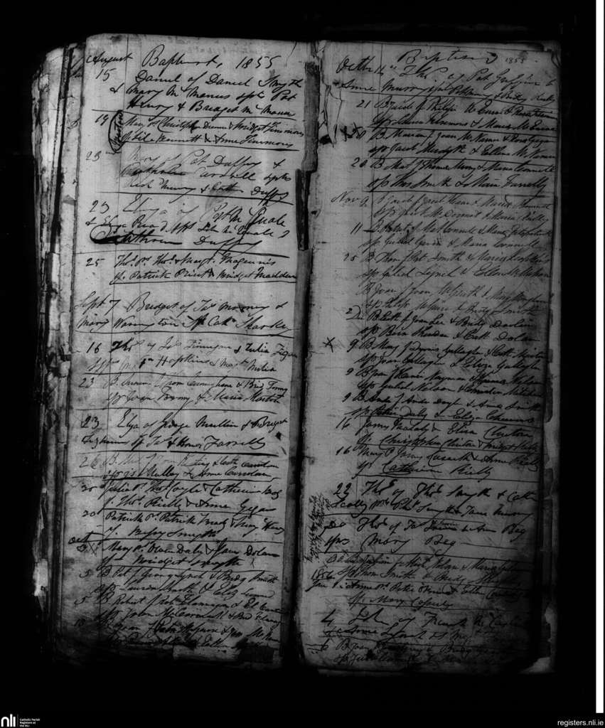 Kells; County of Meath; Diocese of Meath. Baptisms, Aug. 1855 to Jan. 1856