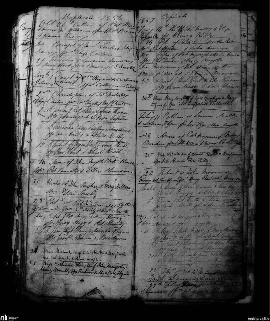 Kells; County of Meath; Diocese of Meath. Baptisms, Oct. 1856 to Feb. 1857
