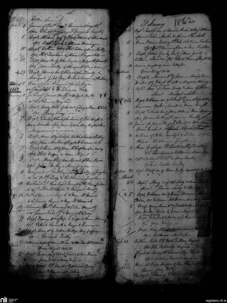 Kells; County of Meath; Diocese of Meath. Baptisms, Dec. 1861 to Mar. 1862