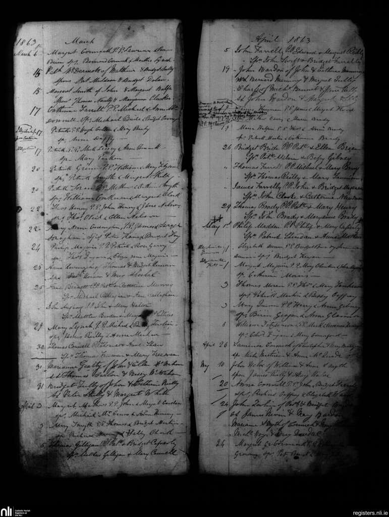 Kells; County of Meath; Diocese of Meath. Baptisms, Mar. 1863 to May 1863