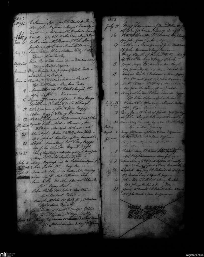 Kells; County of Meath; Diocese of Meath. Baptisms, May 1863 to Aug. 1863