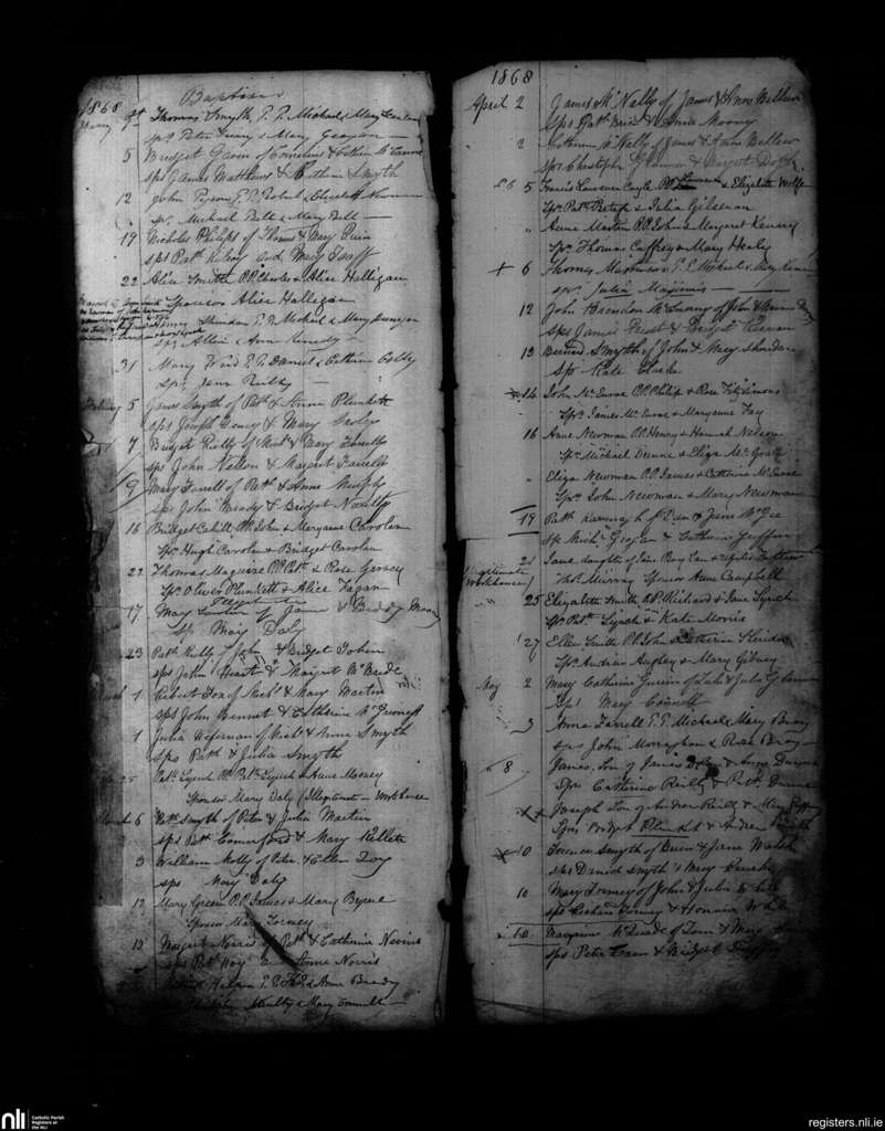Kells; County of Meath; Diocese of Meath. Baptisms, Jan. 1868 to May 1868