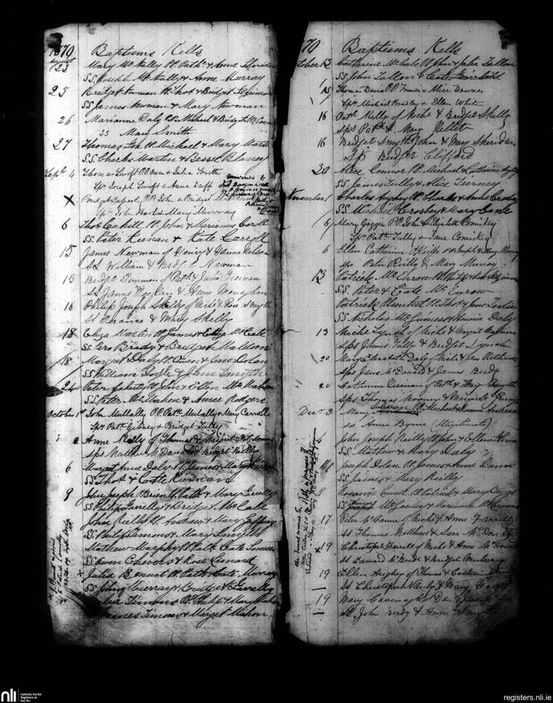 Kells; County of Meath; Diocese of Meath. Baptisms, Aug. 1870 to Dec. 1870