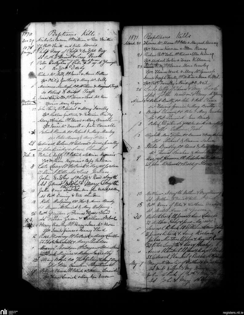 Kells; County of Meath; Diocese of Meath. Baptisms, Dec. 1870 to May 1871