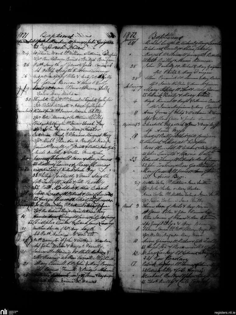 Kells; County of Meath; Diocese of Meath. Baptisms, Nov. 1871 to Mar. 1872
