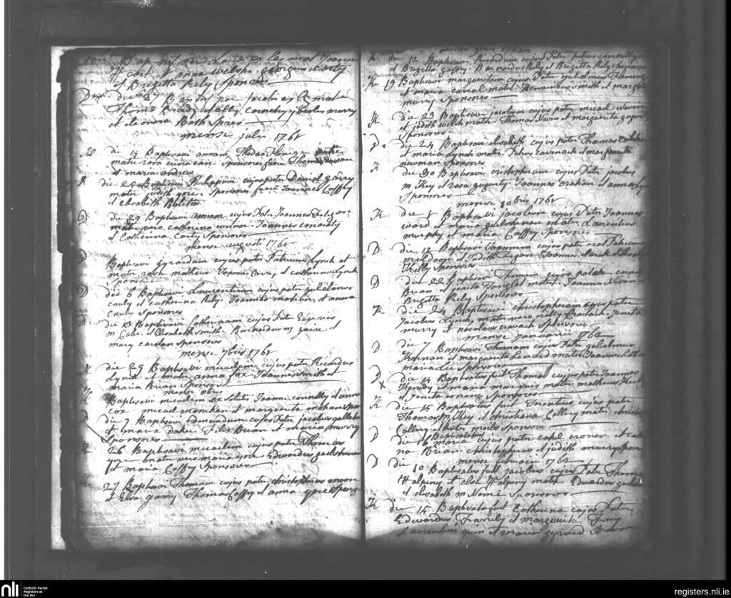 Oristown; County of Meath; Diocese of Meath. Baptisms, June 1761 to Feb. 1762