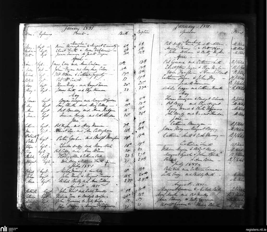 Oristown; County of Meath; Diocese of Meath. Baptisms, Mar. 1851 to Aug. 1851