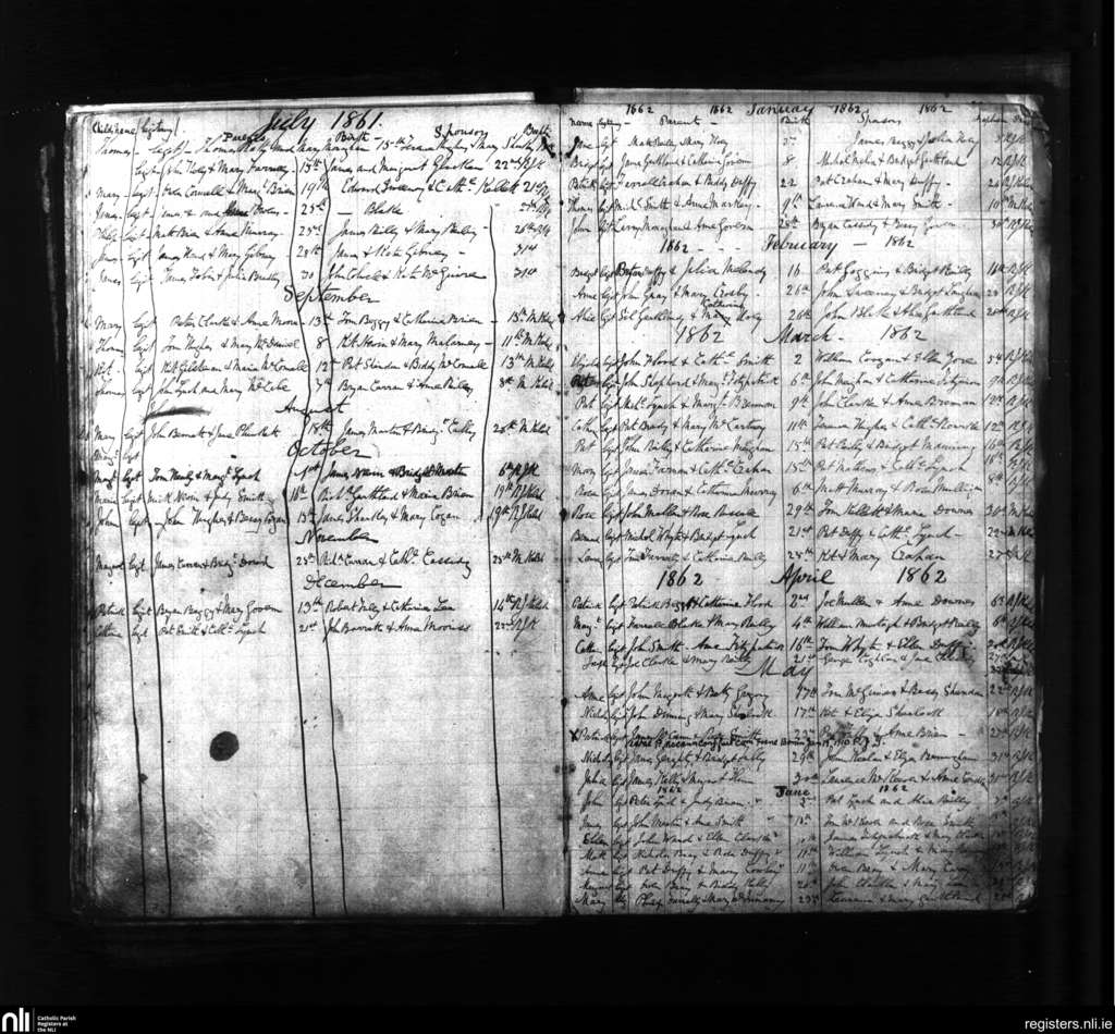 Oristown; County of Meath; Diocese of Meath. Baptisms, July 1861 to June 1862