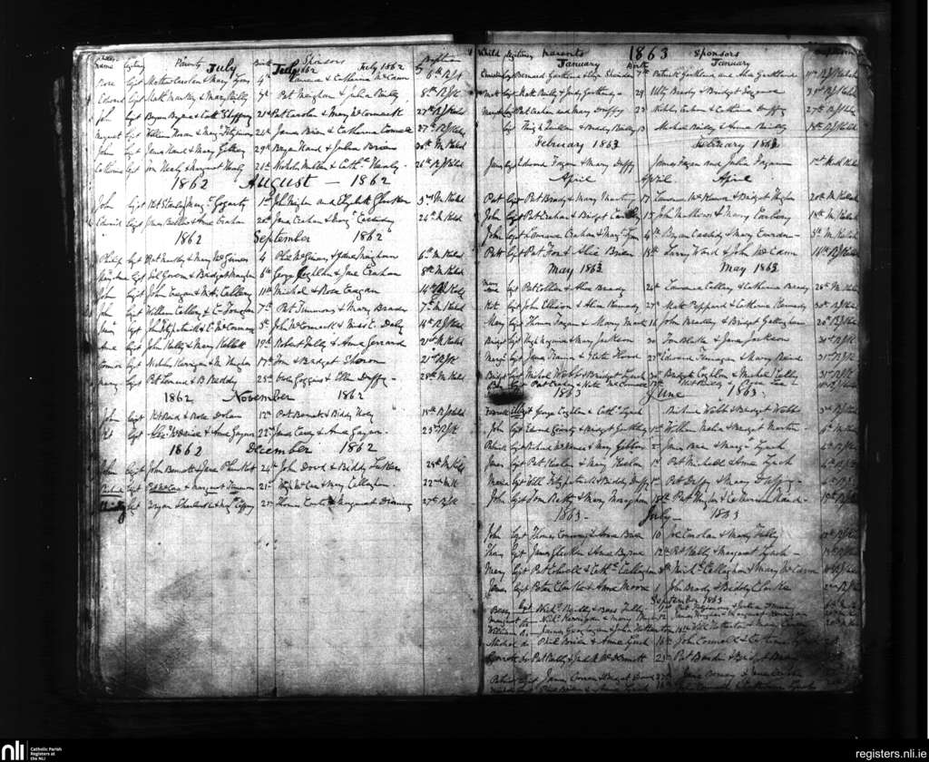 Oristown; County of Meath; Diocese of Meath. Baptisms, July 1862 to Sep. 1863