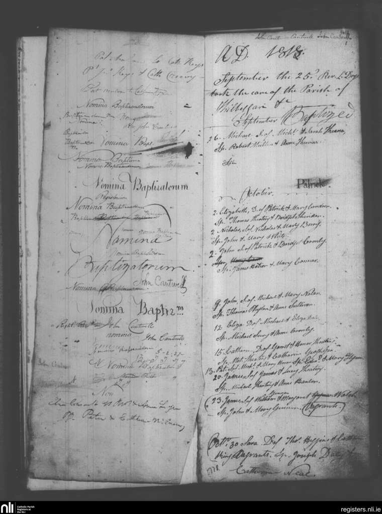Kilbeggan; County of Westmeath; Diocese of Meath. Baptisms, Sep. 1818 to Oct. 1818