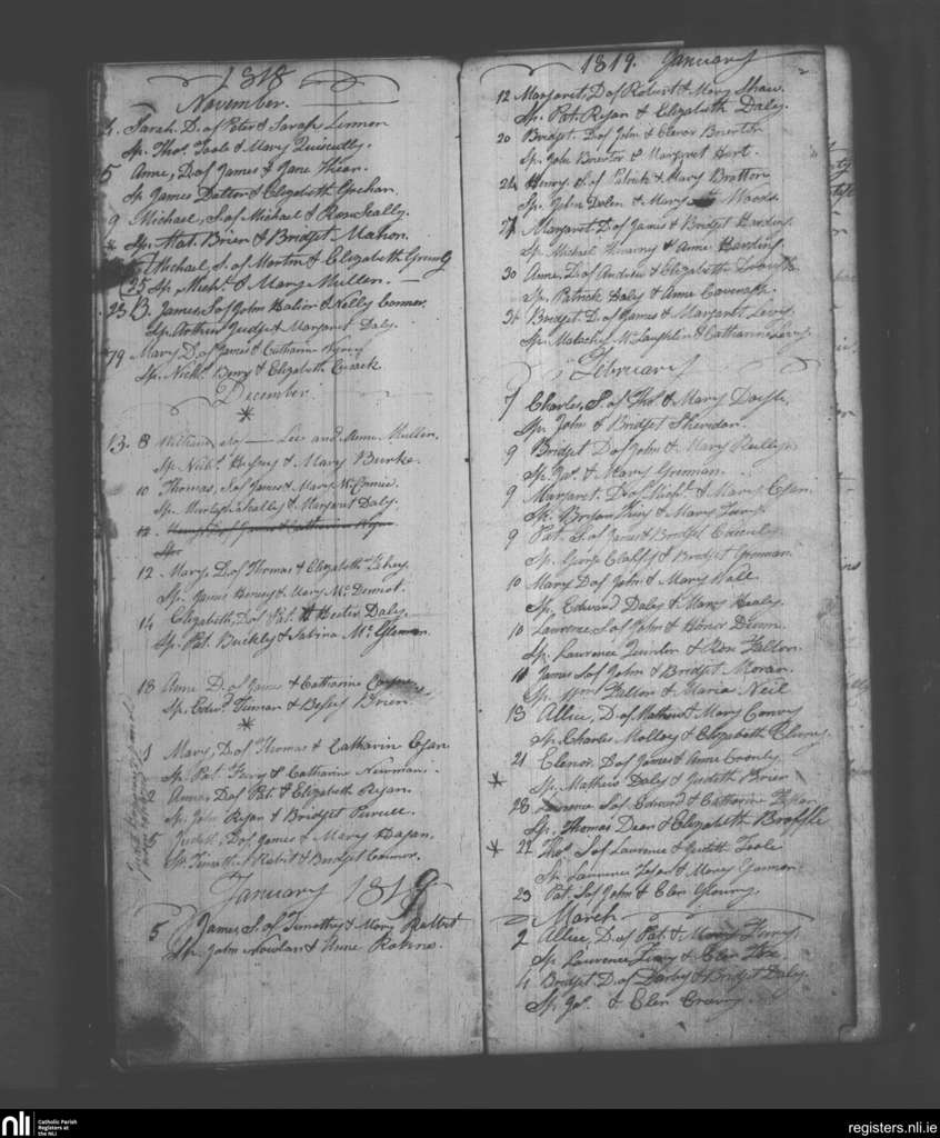Kilbeggan; County of Westmeath; Diocese of Meath. Baptisms, Nov. 1818 to Mar. 1819