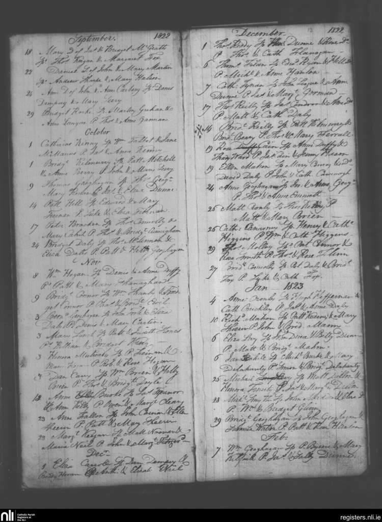 Kilbeggan; County of Westmeath; Diocese of Meath. Baptisms, Sep. 1822 to Feb. 1823
