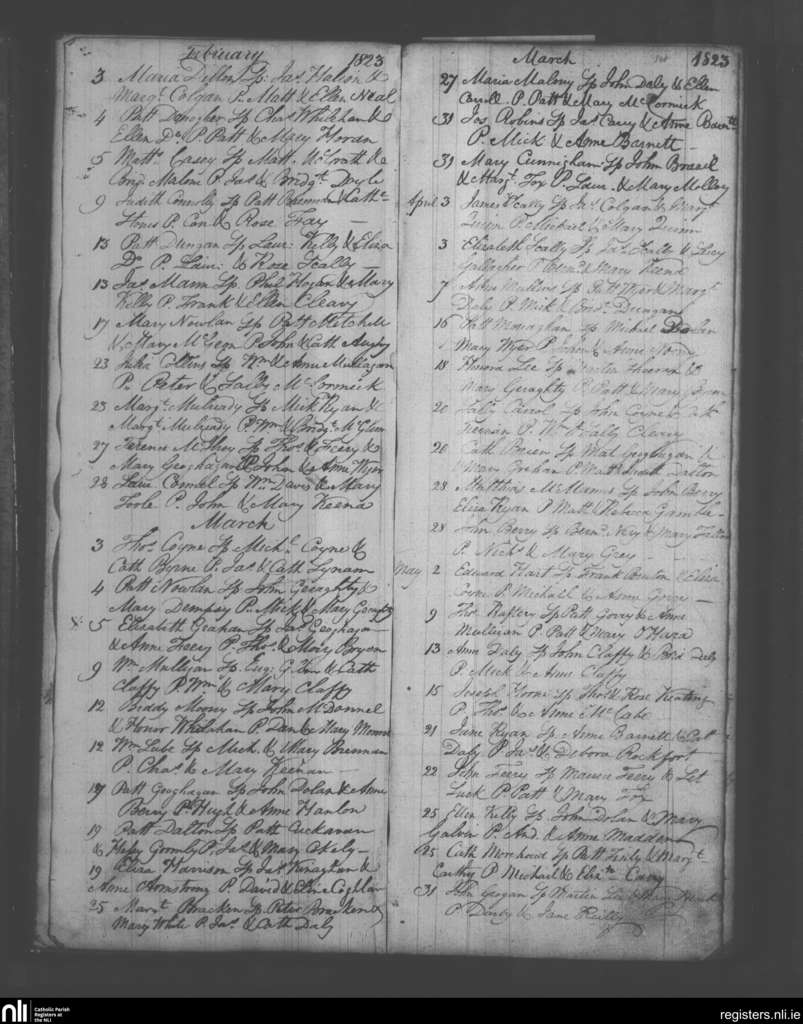 Kilbeggan; County of Westmeath; Diocese of Meath. Baptisms, Feb. 1823 to May 1823
