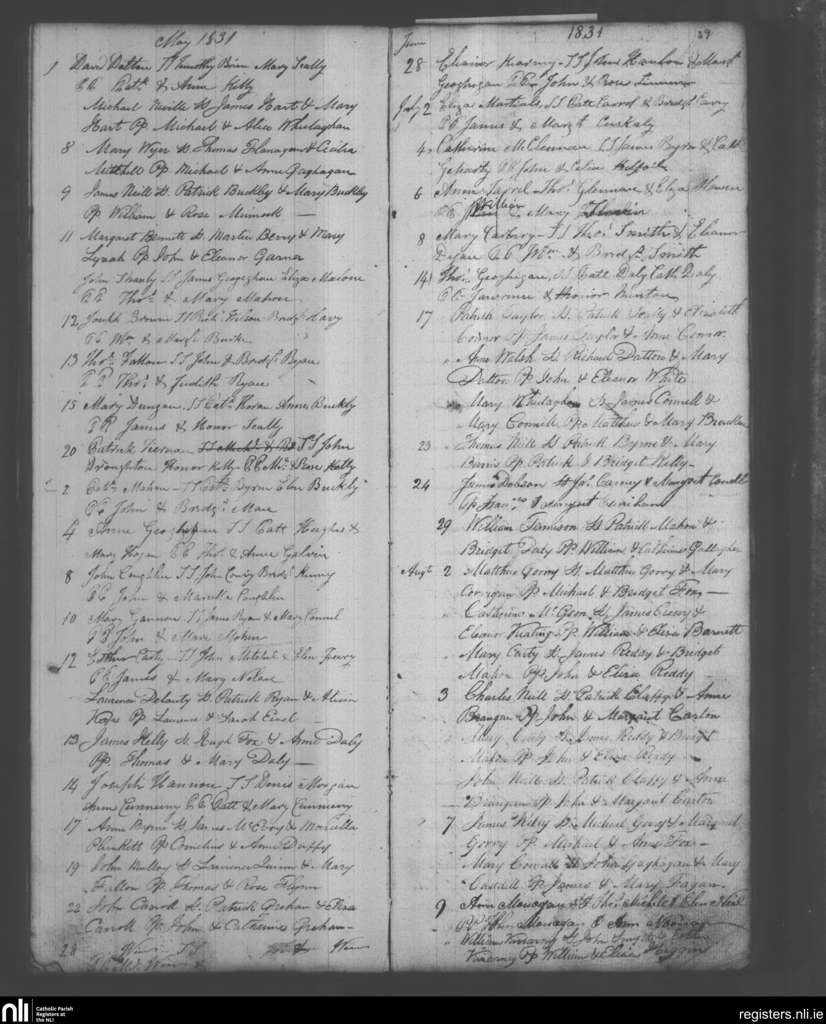 Kilbeggan; County of Westmeath; Diocese of Meath. Baptisms, May 1831 to Aug. 1831