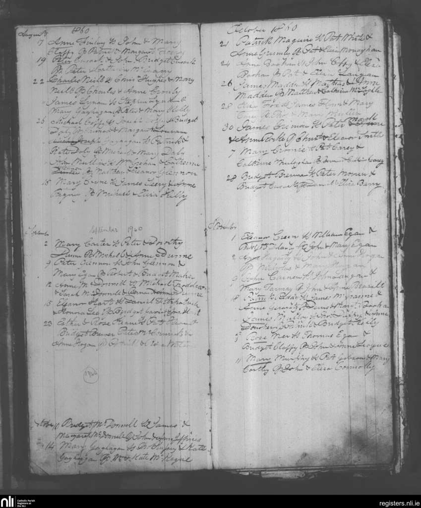 Kilbeggan; County of Westmeath; Diocese of Meath. Baptisms, Aug. 1860 to Nov. 1860