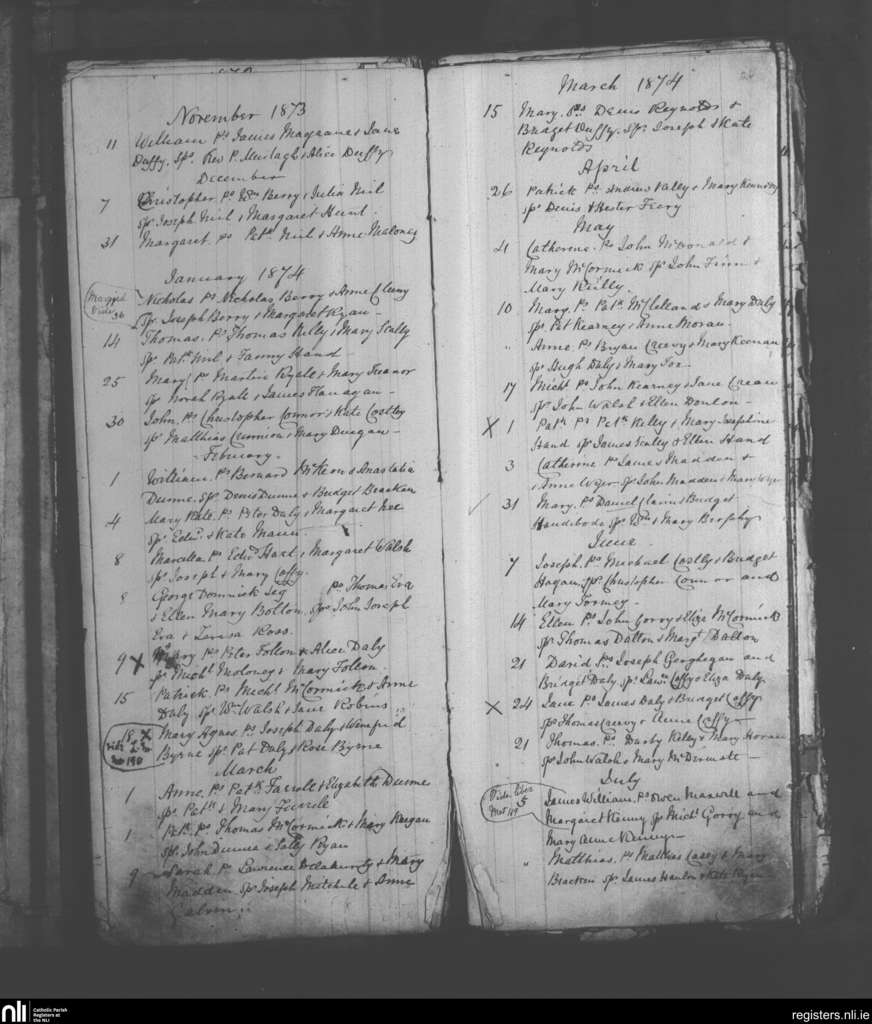 Kilbeggan; County of Westmeath; Diocese of Meath. Baptisms, Nov. 1873 to July 1874