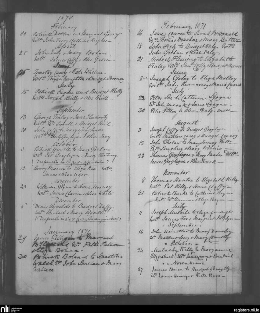 Kilbeggan; County of Westmeath; Diocese of Meath. Marriages, Feb. 1870 to Nov. 1871
