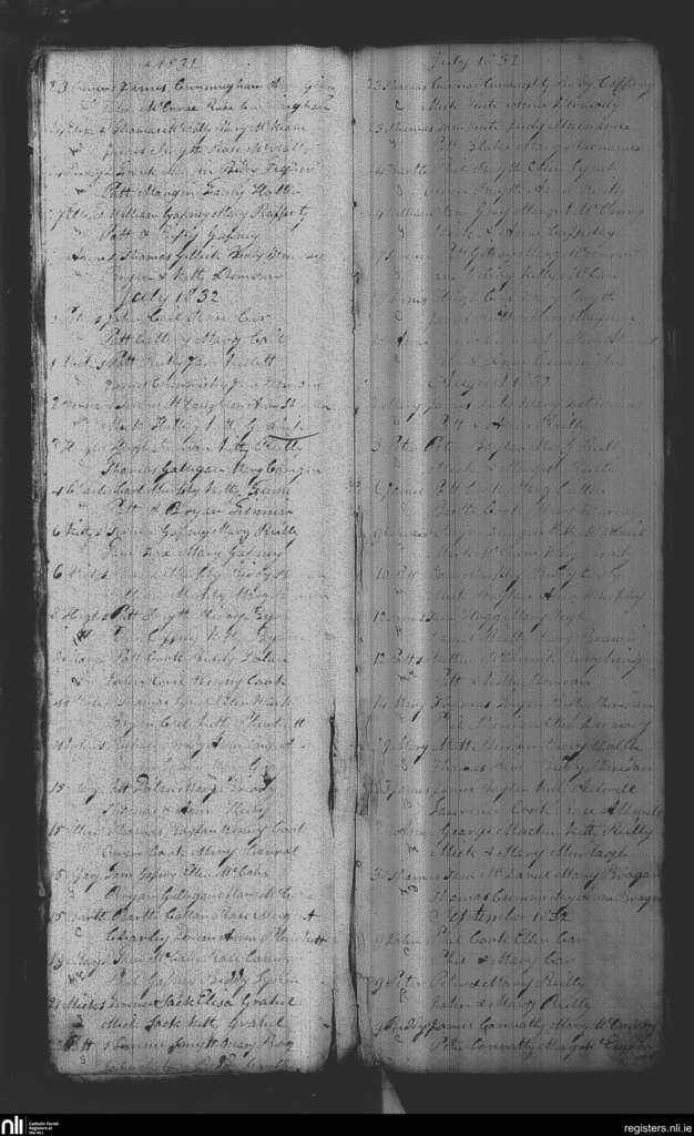 Kilbride and Mountnugent; County of Westmeath, Meath, Cavan; Diocese of Meath. Baptisms, June 1832 to Sep. 1832