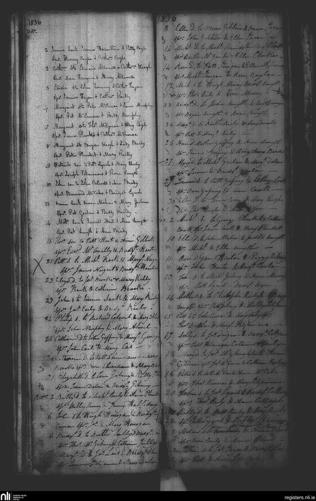 Kilbride and Mountnugent; County of Westmeath, Meath, Cavan; Diocese of Meath. Baptisms, Oct. 1836 to Dec. 1836