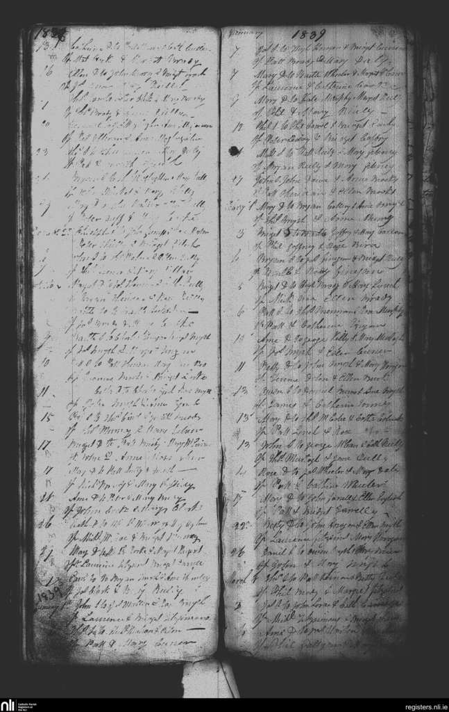 Kilbride and Mountnugent; County of Westmeath, Meath, Cavan; Diocese of Meath. Baptisms, Nov. 1838 to Mar. 1839