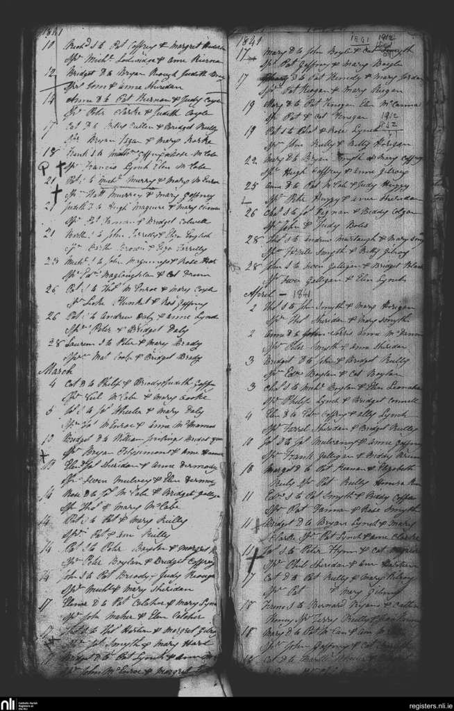 Kilbride and Mountnugent; County of Westmeath, Meath, Cavan; Diocese of Meath. Baptisms, Feb. 1841 to Apr. 1841