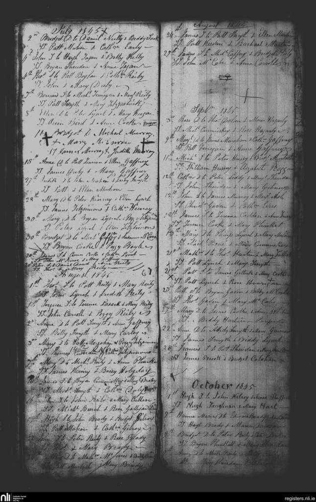 Kilbride and Mountnugent; County of Westmeath, Meath, Cavan; Diocese of Meath. Baptisms, July 1845 to Oct. 1845