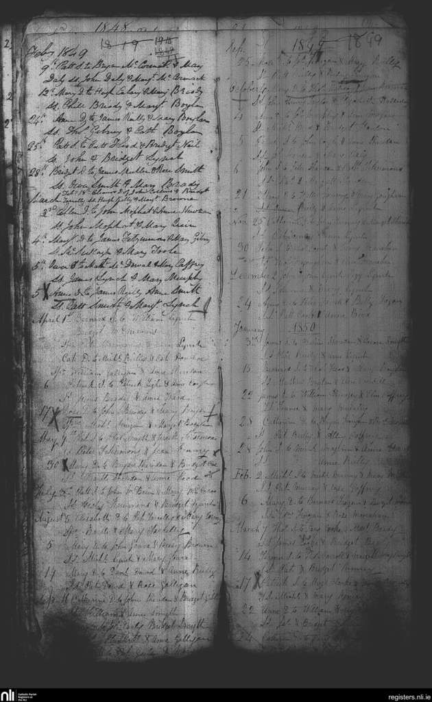Kilbride and Mountnugent; County of Westmeath, Meath, Cavan; Diocese of Meath. Baptisms, Feb. 1849 to Mar. 1850
