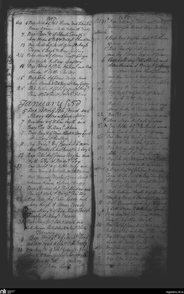 Kilbride and Mountnugent; County of Westmeath, Meath, Cavan; Diocese of Meath. Baptisms, Dec. 1857 to Apr. 1858