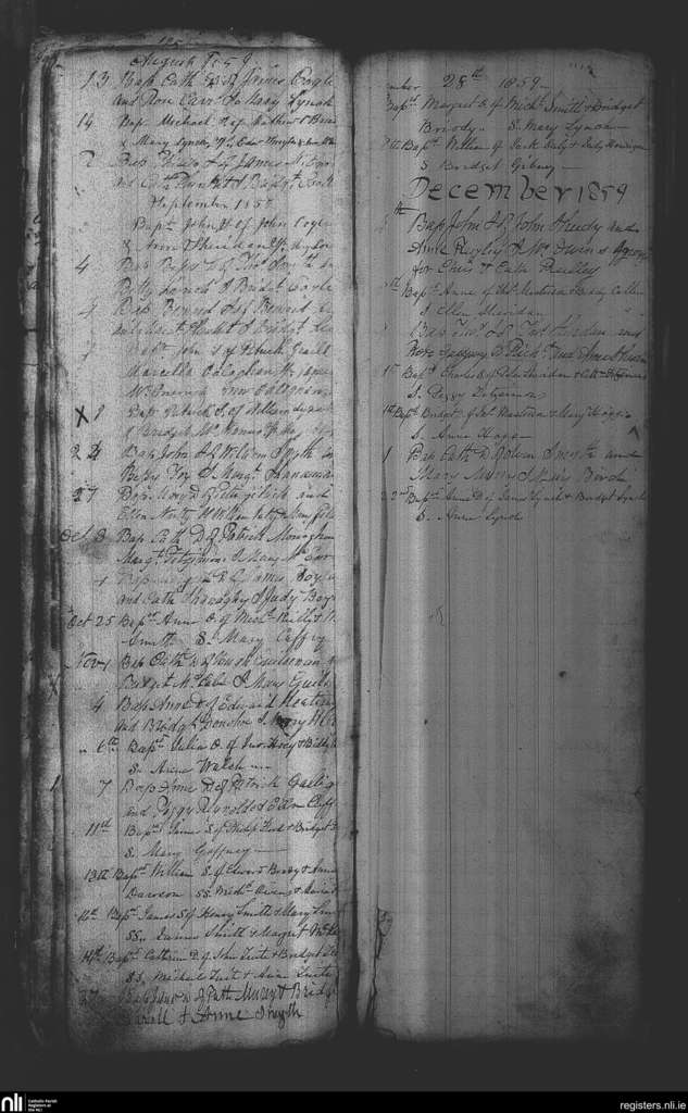 Kilbride and Mountnugent; County of Westmeath, Meath, Cavan; Diocese of Meath. Baptisms, Aug. 1859 to Dec. 1859