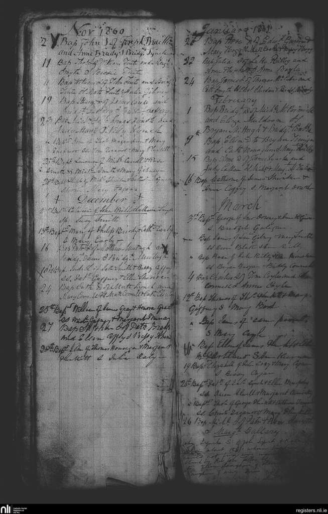 Kilbride and Mountnugent; County of Westmeath, Meath, Cavan; Diocese of Meath. Baptisms, Nov. 1860 to Mar. 1861