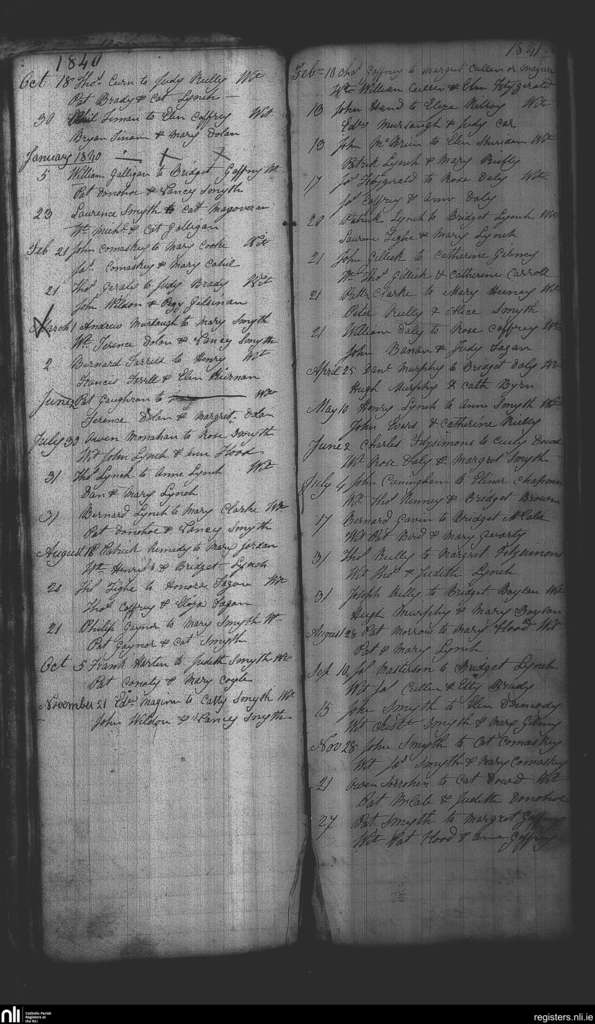 Kilbride and Mountnugent; County of Westmeath, Meath, Cavan; Diocese of Meath. Marriages, Oct. 1839 to Nov. 1841