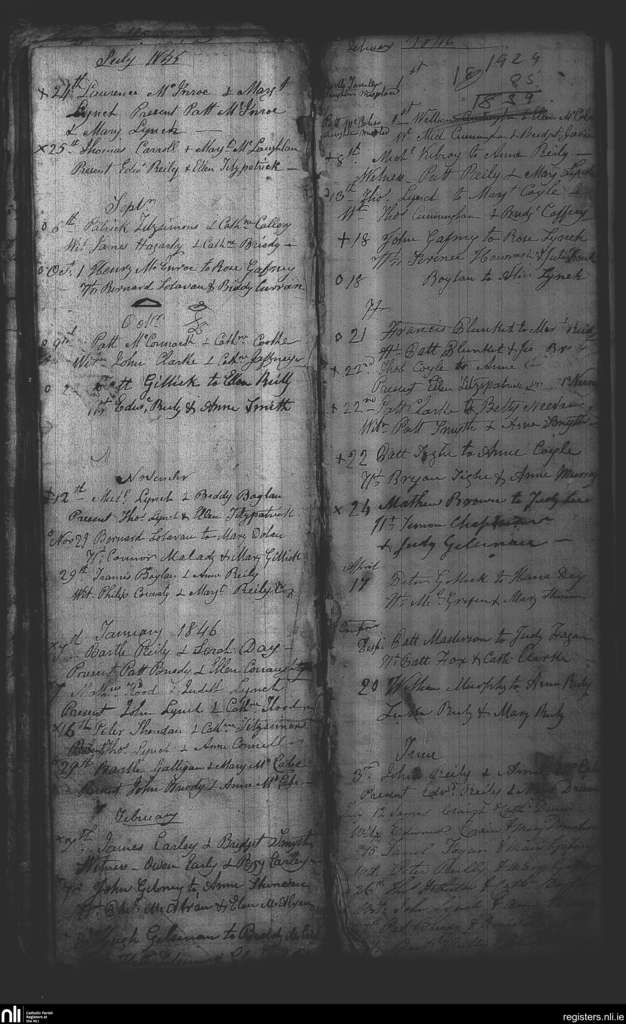 Kilbride and Mountnugent; County of Westmeath, Meath, Cavan; Diocese of Meath. Marriages, July 1845 to July 1846