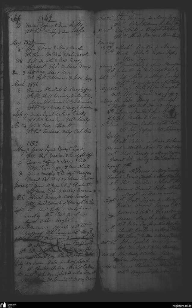 Kilbride and Mountnugent; County of Westmeath, Meath, Cavan; Diocese of Meath. Marriages, Sep. 1849 to Nov. 1853