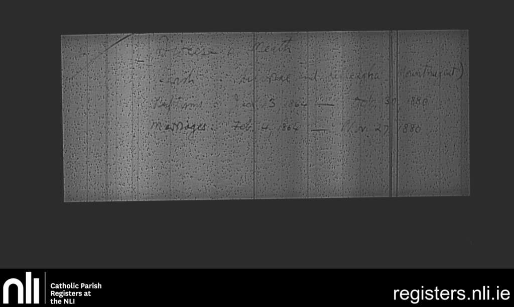 Kilbride and Mountnugent; County of Westmeath, Meath, Cavan; Diocese of Meath. Baptisms, Marriages