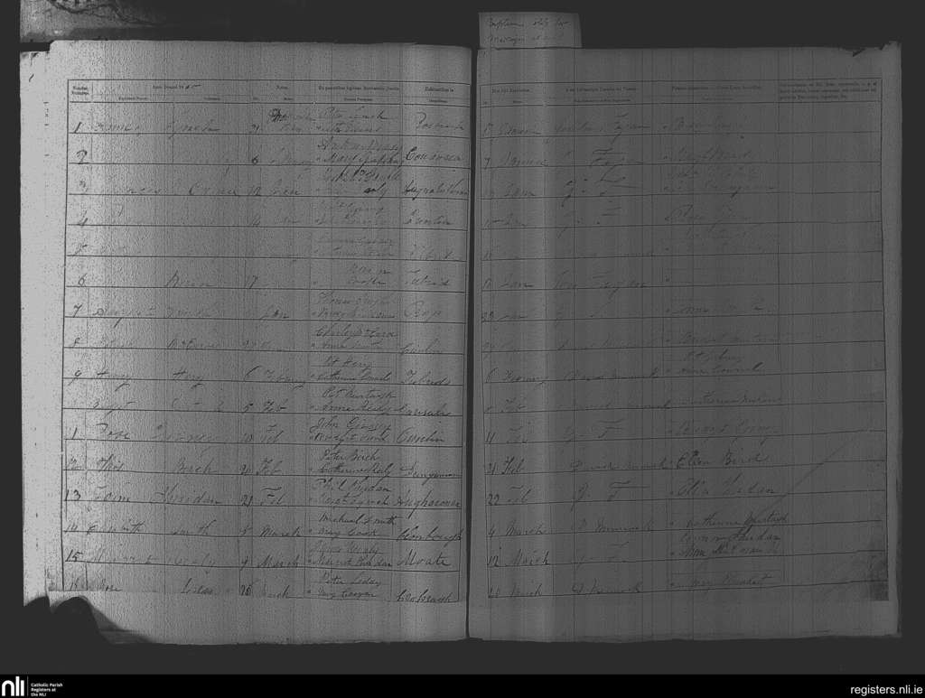 Kilbride and Mountnugent; County of Westmeath, Meath, Cavan; Diocese of Meath. Baptisms, Jan. 1865 to Mar. 1865