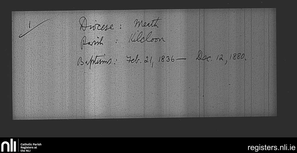 Kilcloon, Batterstown and Kilcock; County of Meath; Diocese of Meath. Baptisms