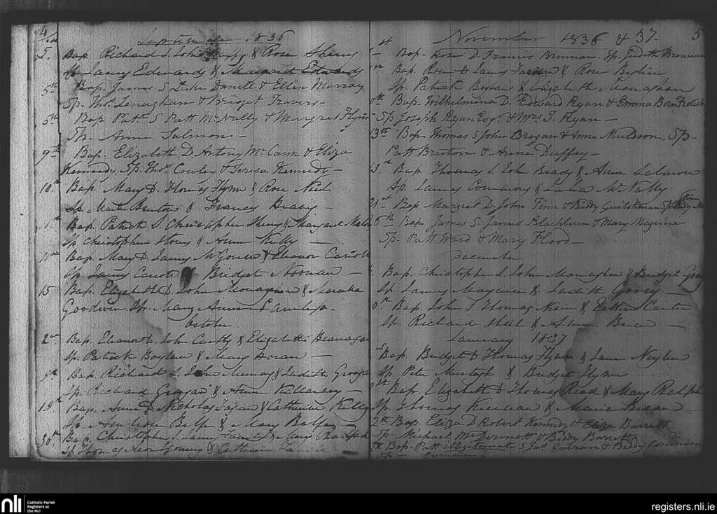 Kilcloon, Batterstown and Kilcock; County of Meath; Diocese of Meath. Baptisms, Sep. 1836 to Jan. 1837