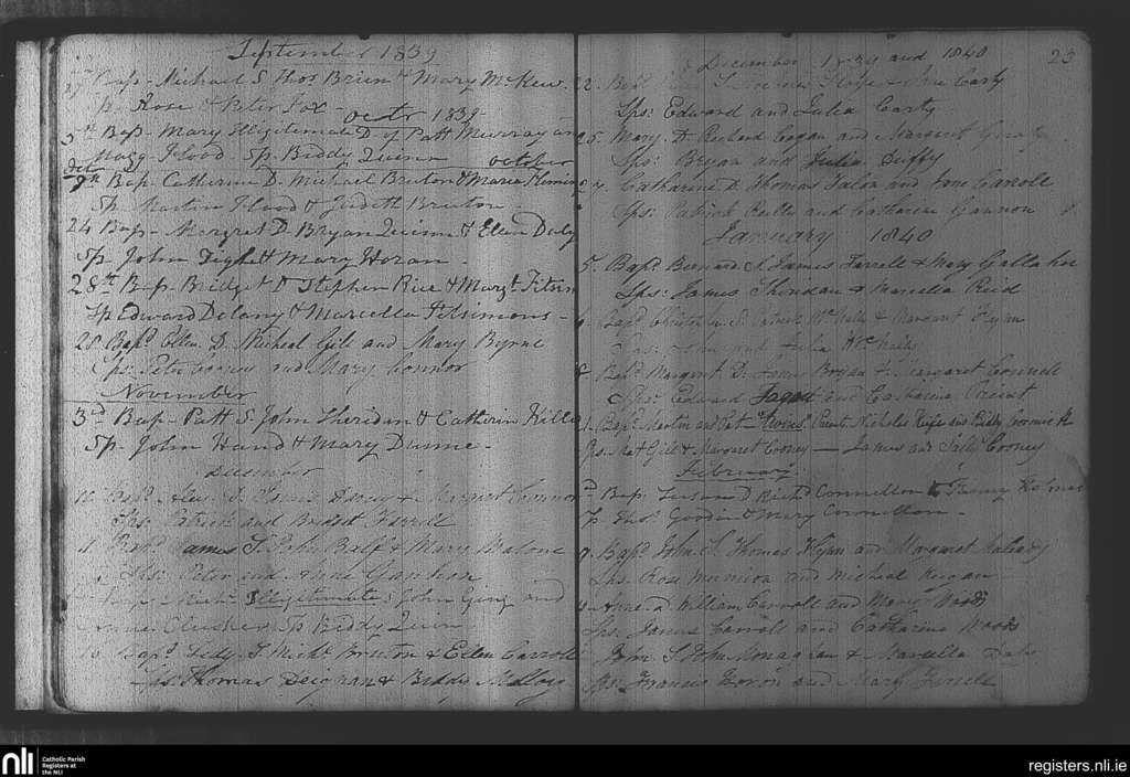 Kilcloon, Batterstown and Kilcock; County of Meath; Diocese of Meath. Baptisms, Sep. 1839 to Feb. 1840