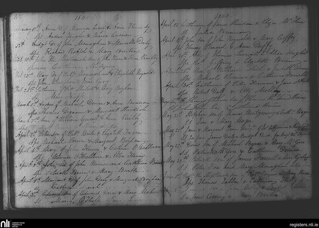 Kilcloon, Batterstown and Kilcock; County of Meath; Diocese of Meath. Baptisms, Jan. 1845 to June 1845
