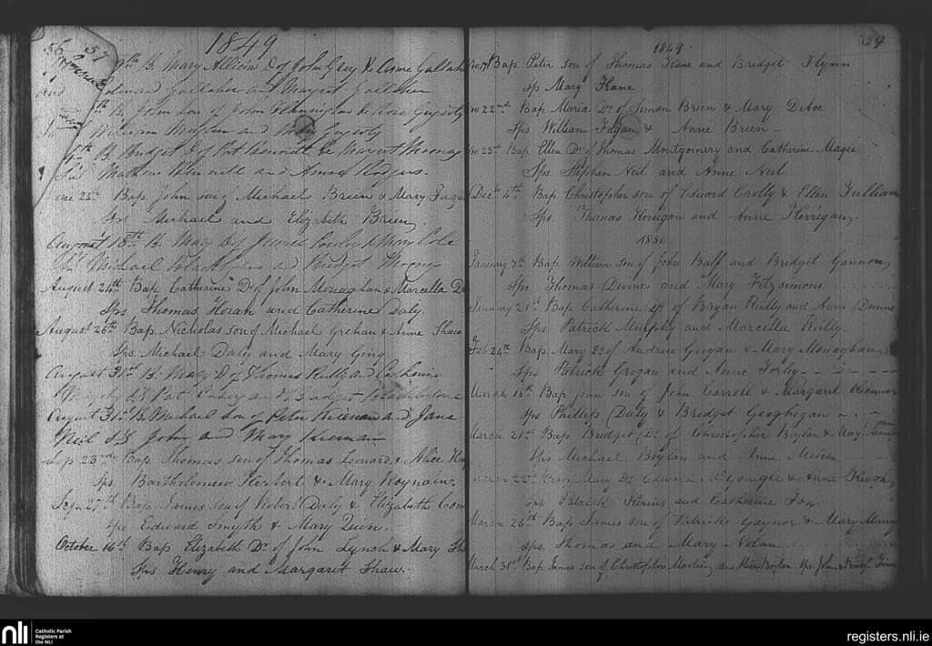 Kilcloon, Batterstown and Kilcock; County of Meath; Diocese of Meath. Baptisms, June 1849 to Mar. 1850