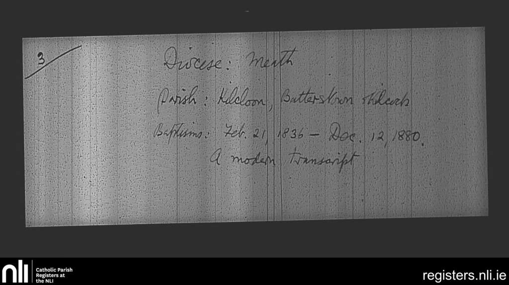 Kilcloon, Batterstown and Kilcock; County of Meath; Diocese of Meath. Baptisms