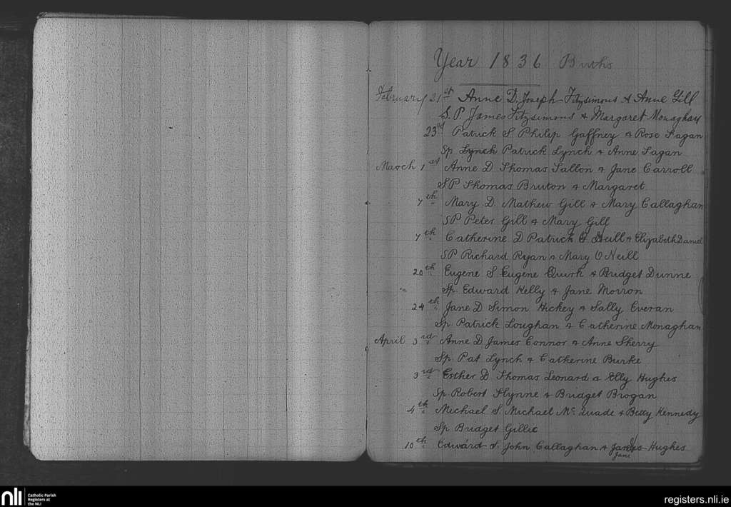Kilcloon, Batterstown and Kilcock; County of Meath; Diocese of Meath. Baptisms, Feb. 1836 to Apr. 1836
