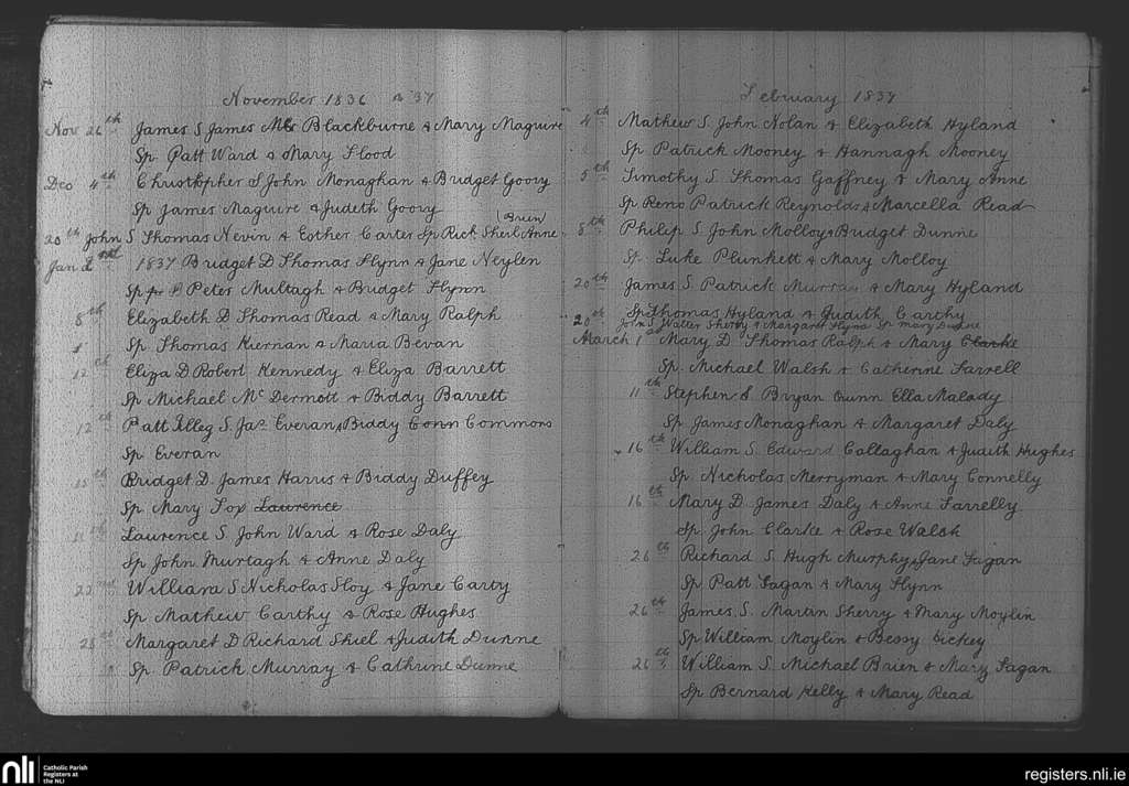 Kilcloon, Batterstown and Kilcock; County of Meath; Diocese of Meath. Baptisms, Nov. 1836 to Mar. 1837